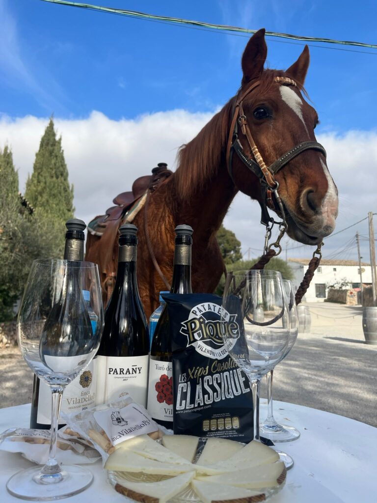 We organize Horseback Wine Tours to the nearby organic Winery Finca Viladellops.